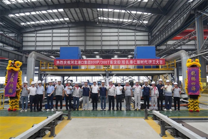 8 月 15 日,蕪湖造船廠為秦皇島合創船務有限公司建造的800客位新型客滾船舉行開工儀式。河北港口集團、秦皇島合創船...